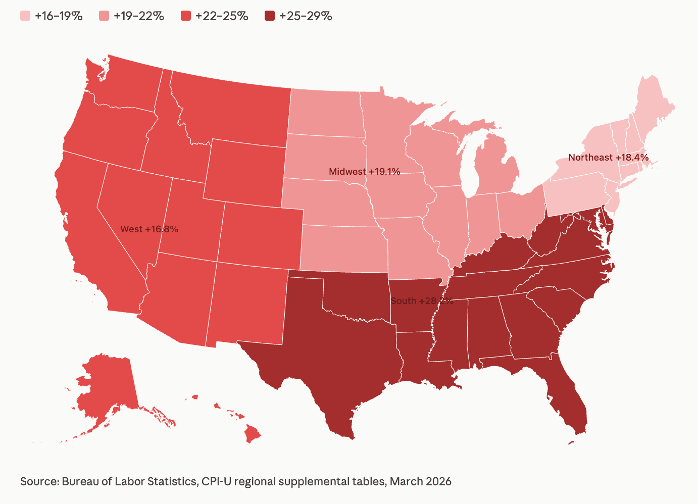 The industry was already operating under structural pressure before March. The energy shock has added a measurable incremental headwind — roughly 1.9 percent nationally and 2.5 percent in the South — with the full weight landing in May and June.